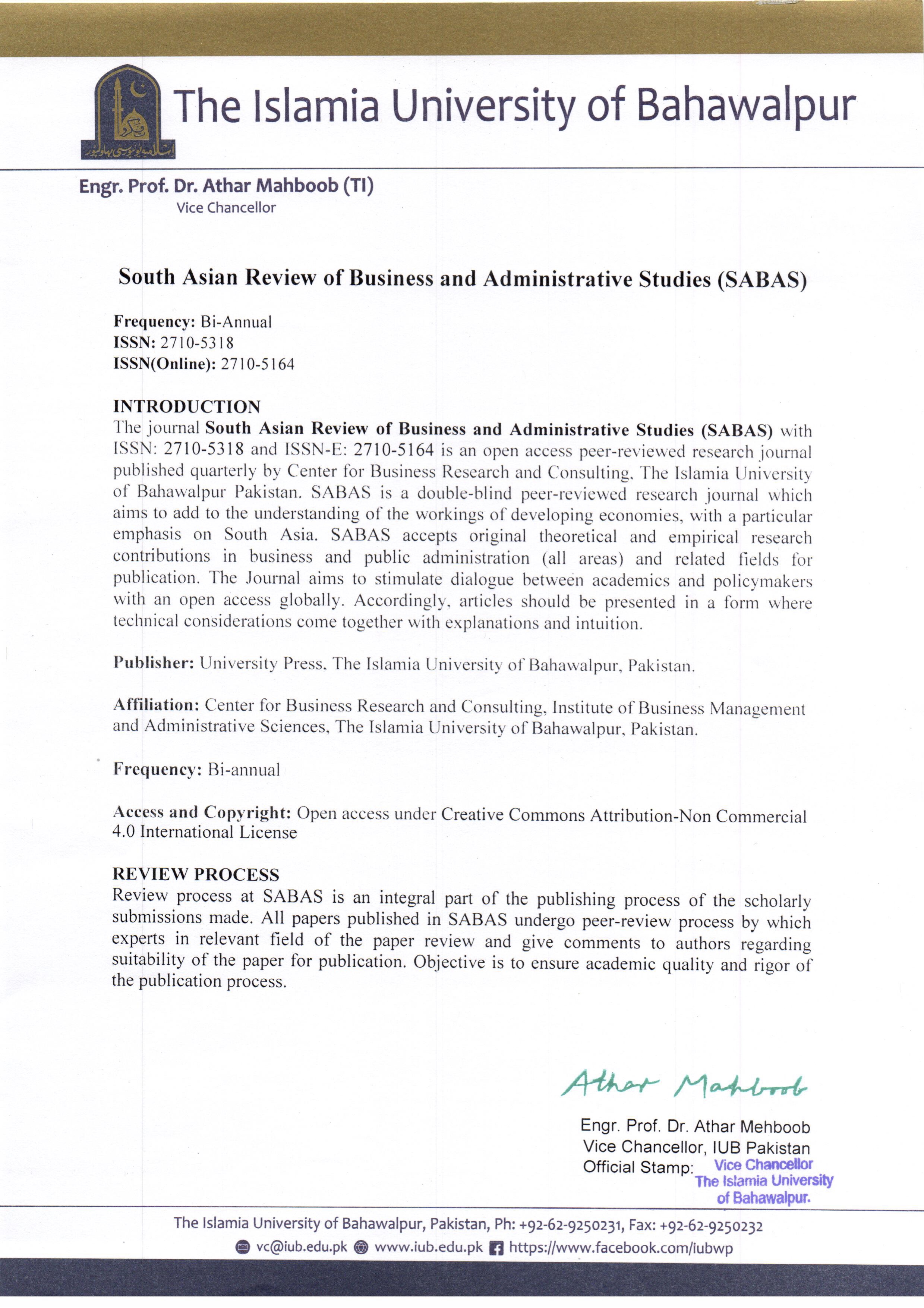 South Asian Review of Business and Administrative Studies (SABAS)