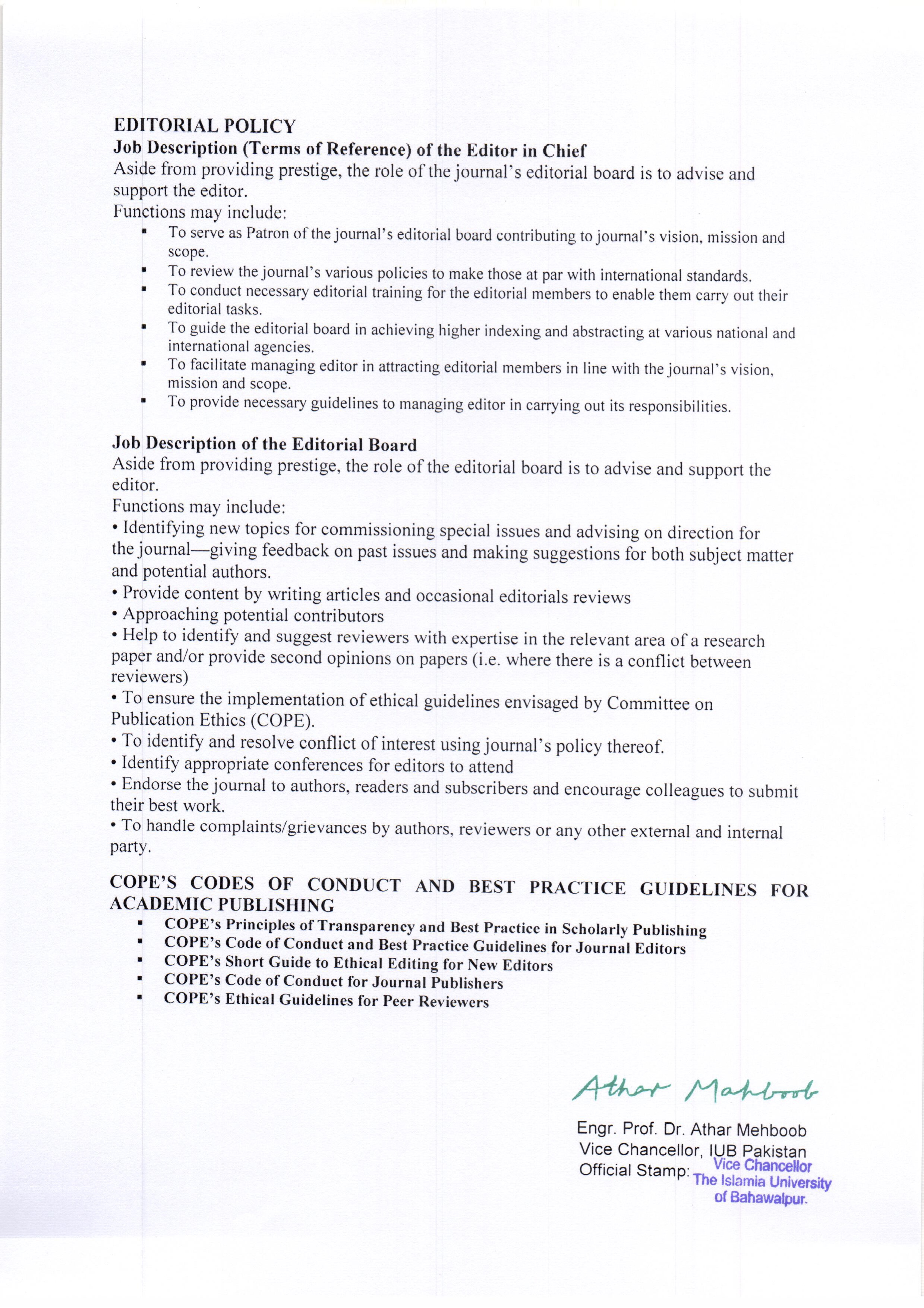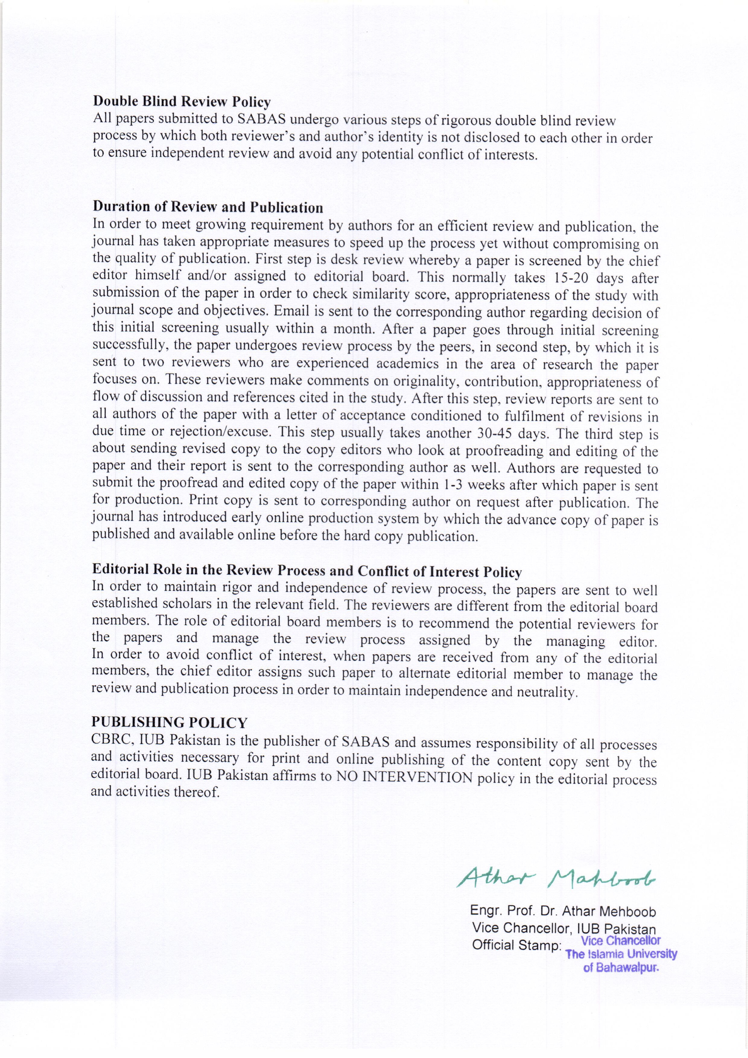 Journal Policy Document